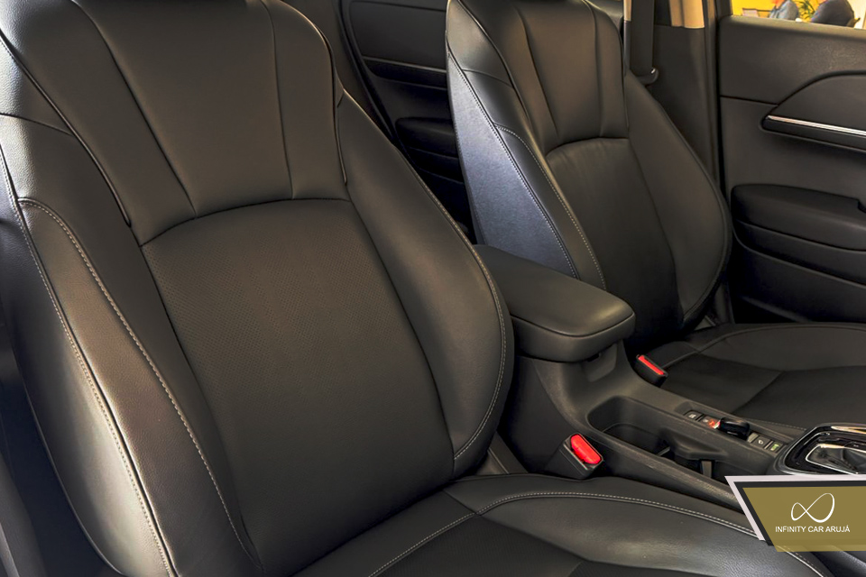 airbags, alarme, ar condicionado, ar quente, banco do motorista com ajuste de altura, bancos de couro, computador de bordo, desembaçador traseiro, faróis de neblina, freio de estacionamento elétrico, freios abs, kit multimídia, limpador traseiro, retrovisores elétricos, rodas de liga leve, sensor de estacionamento, sistema start-stop, travas elétricas, vidros elétricos, volante com regulagem de altura, volante multifuncional,